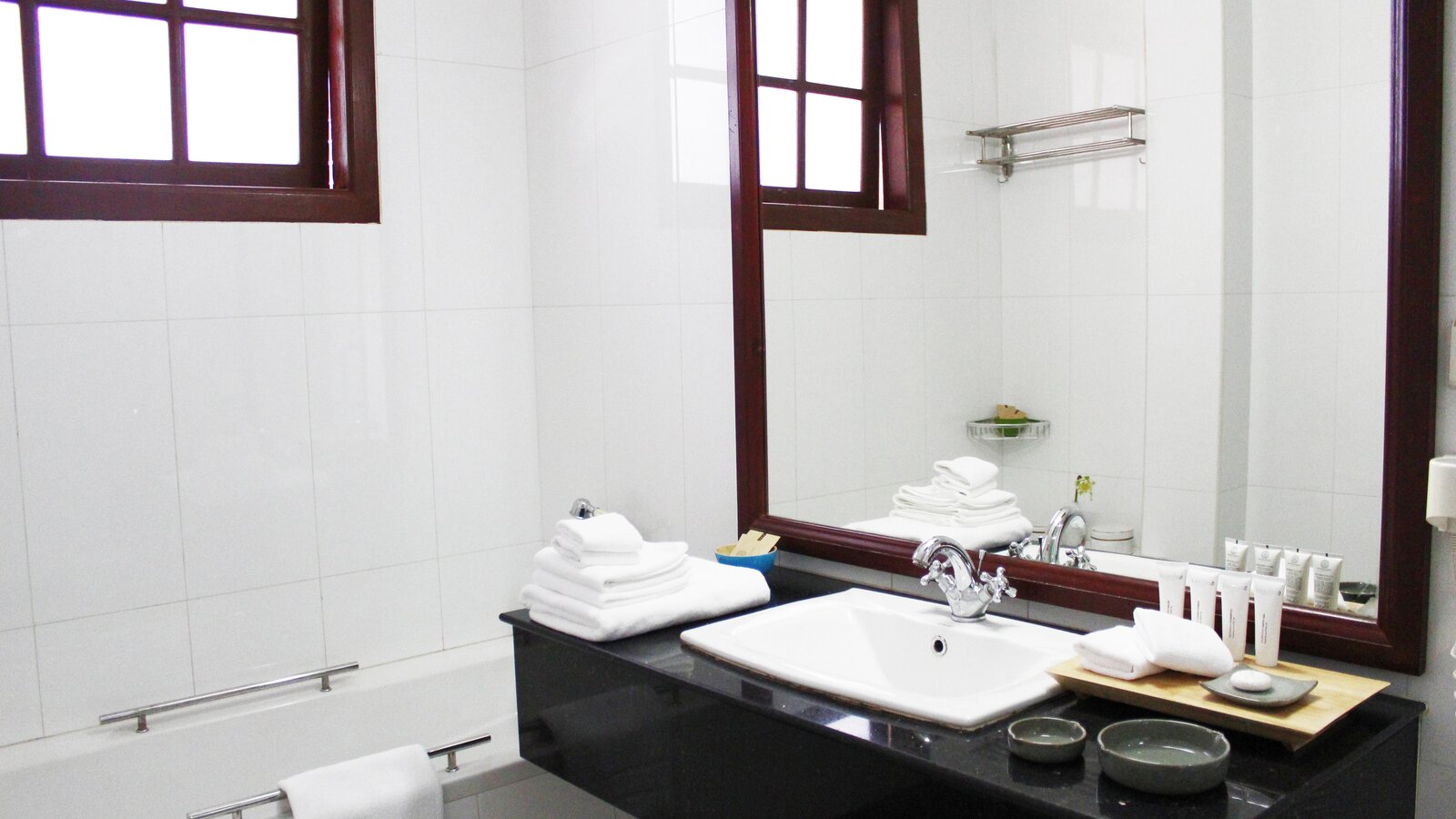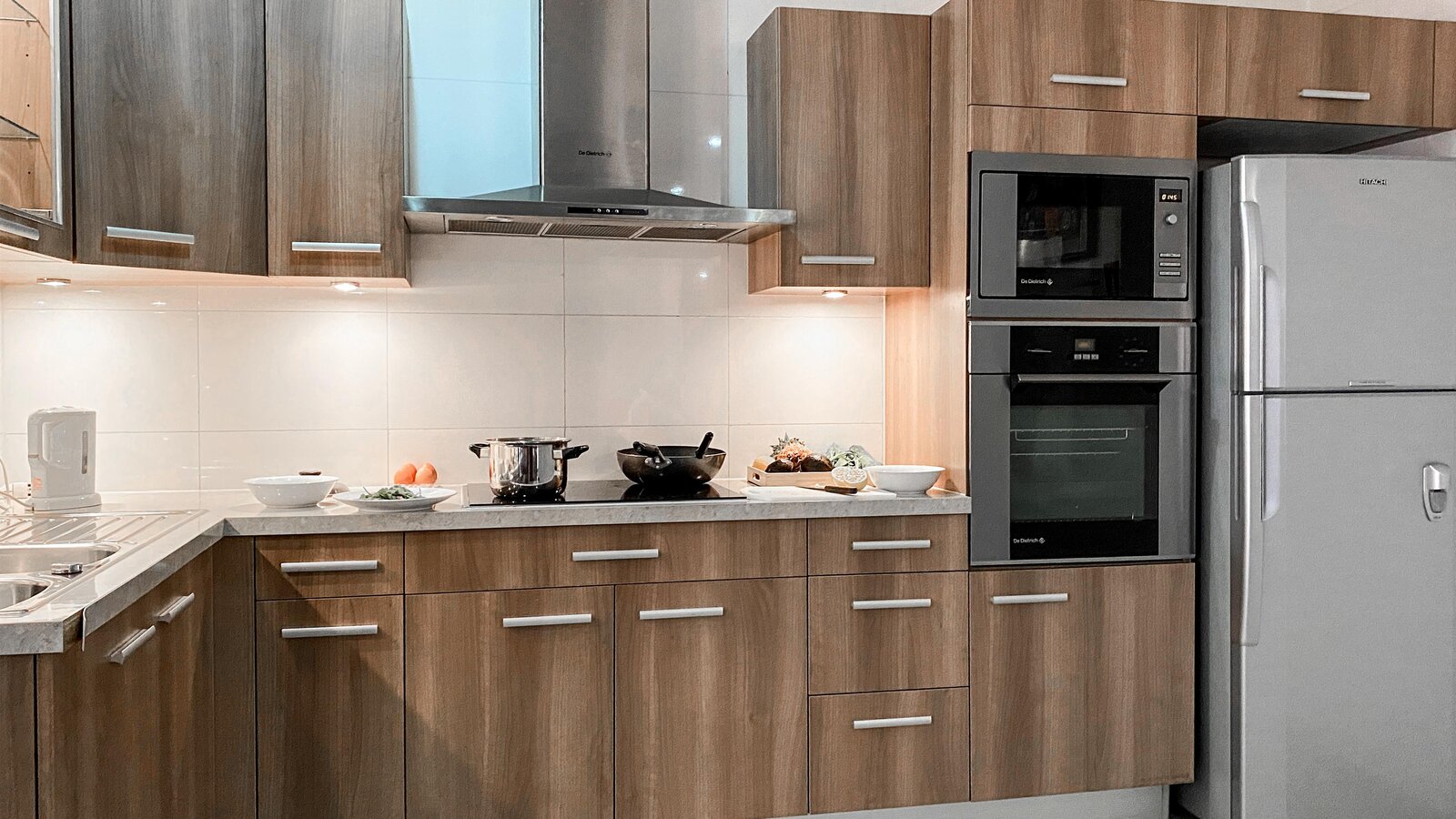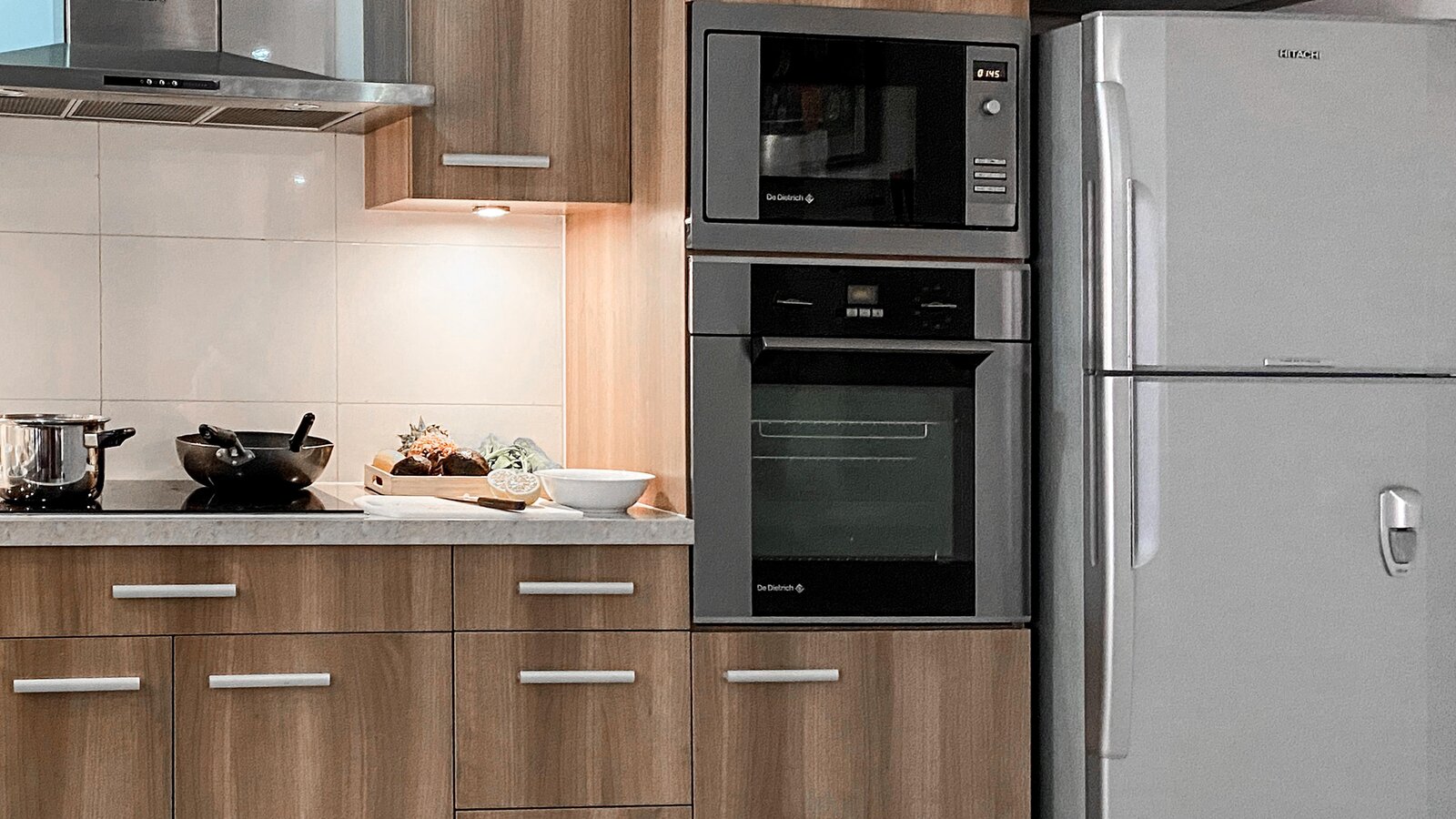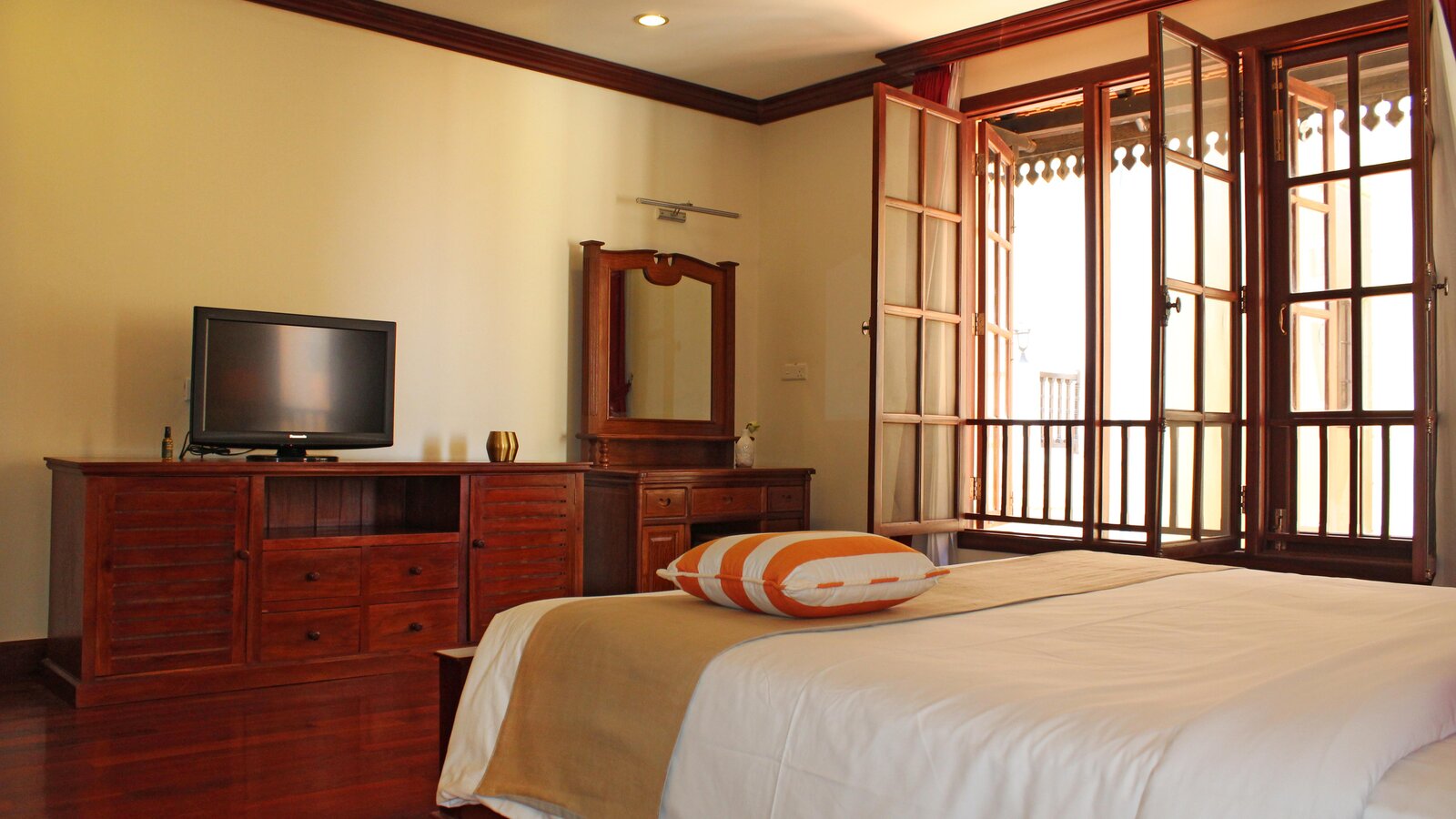 A large and spacious accommodation with fully-equipped open kitchen, sitting area, separate bedroom and bath. Hardwood floor, off-white walls and ceilings. Private balcony with city view.
